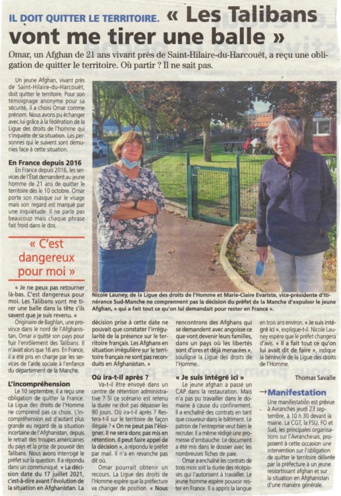 « Dans le sud-Manche, un jeune Afghan de 21 ans a vu sa demande de titre de séjour refusée et il a reçu, le 10 septembre, une obligation de quitter le territoire français. Choquée, la fédération départementale de la Ligue des droits de l’homme a écrit une lettre ouverte au préfet de la Manche.